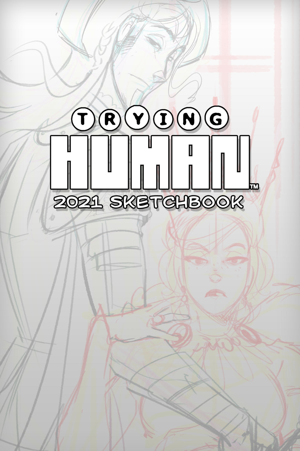 This book contains 40 pages of sketches and rough work related to my comic, Trying Human, from the year 2021 (excluding comic layouts). I did my best to categorize pages by character and theme. There is some NSFW content as well as minor spoilers but nothing you haven’t seen depicted in the comic itself.